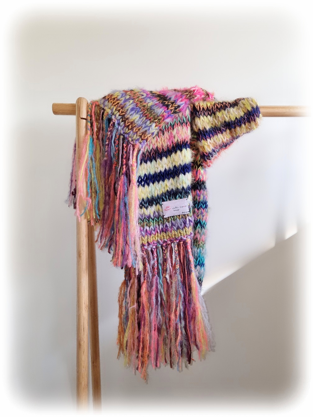 XL fringed scarf: approximate length 250cm; 40% Alpaca, 25% Mohair, 20% Merino, 15% Polyester