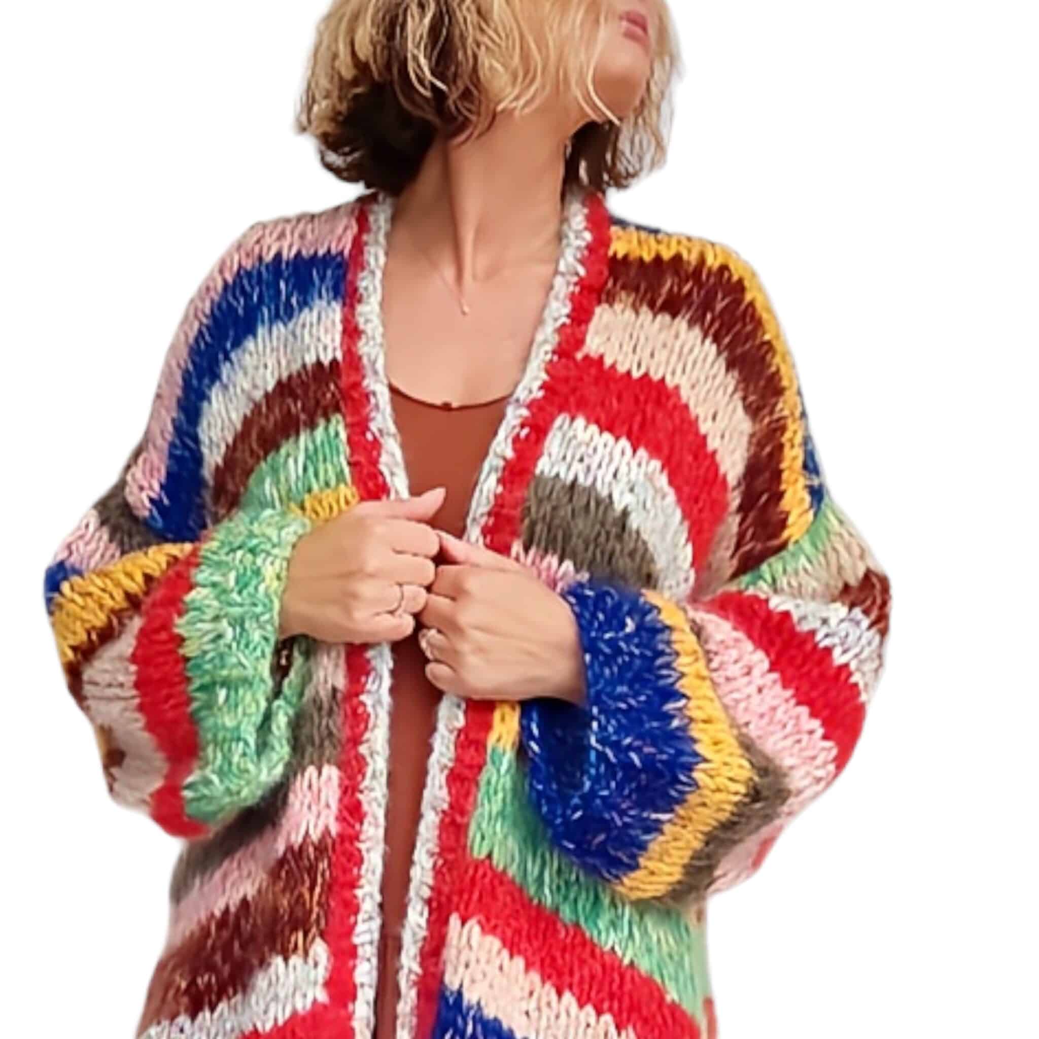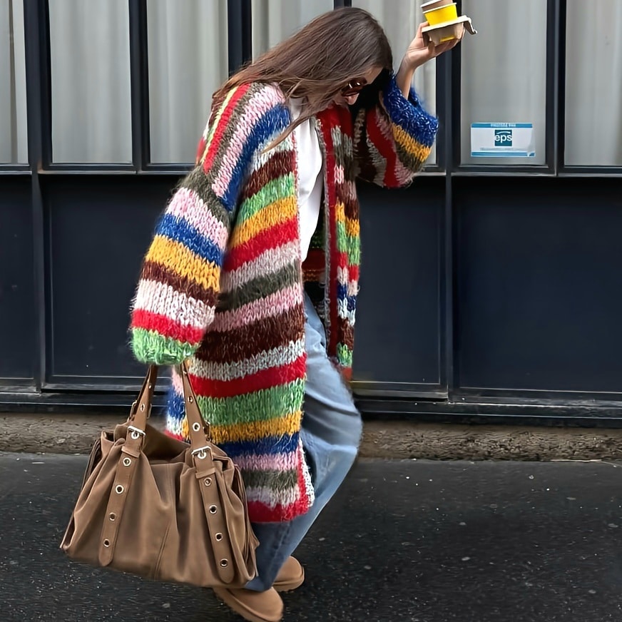 Long striped cardigan 45% Alpaca, 40% Mohair, 15% Polyester